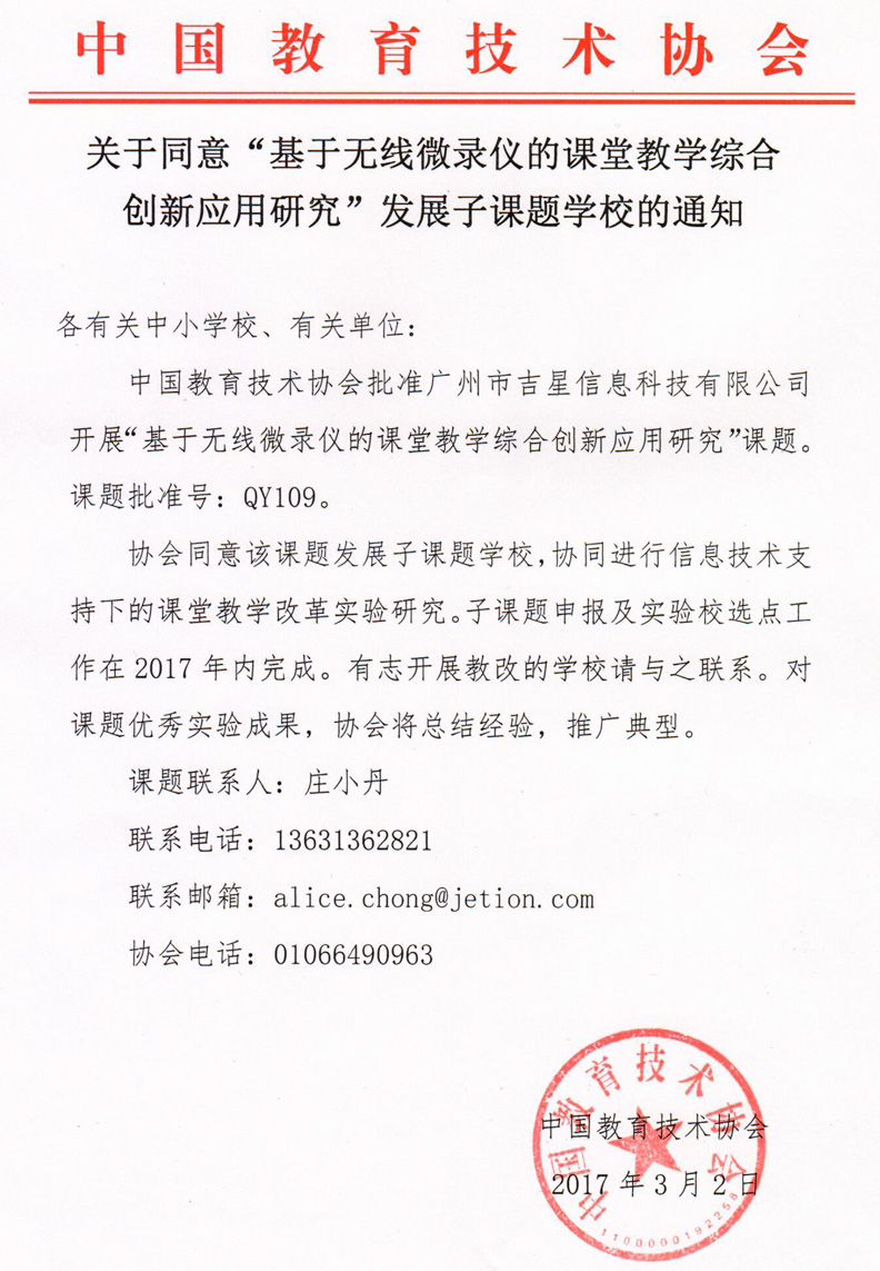 Copyright © 2017 All Rights Reserved 《基于無線微錄儀的課堂教學創新應用研究》總課題組