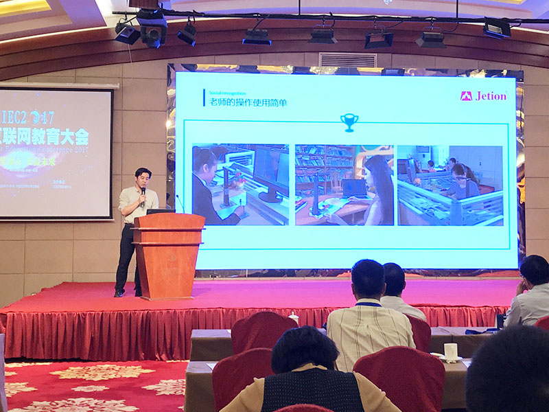 當天下午,吉星科技白杰總監現場分享了《吉星無線智能教育,讓老師更輕松,學生更主動》主題演講,得到了會場嘉賓一致認可。白總監談到,在“互聯網+”時代,互聯網技術的提升加快了社會信息化的發展,也使得教育信息化跨越式發展成了必然,吉星的發展順應互聯網數據的大時代,打造互聯網+教學新模式!