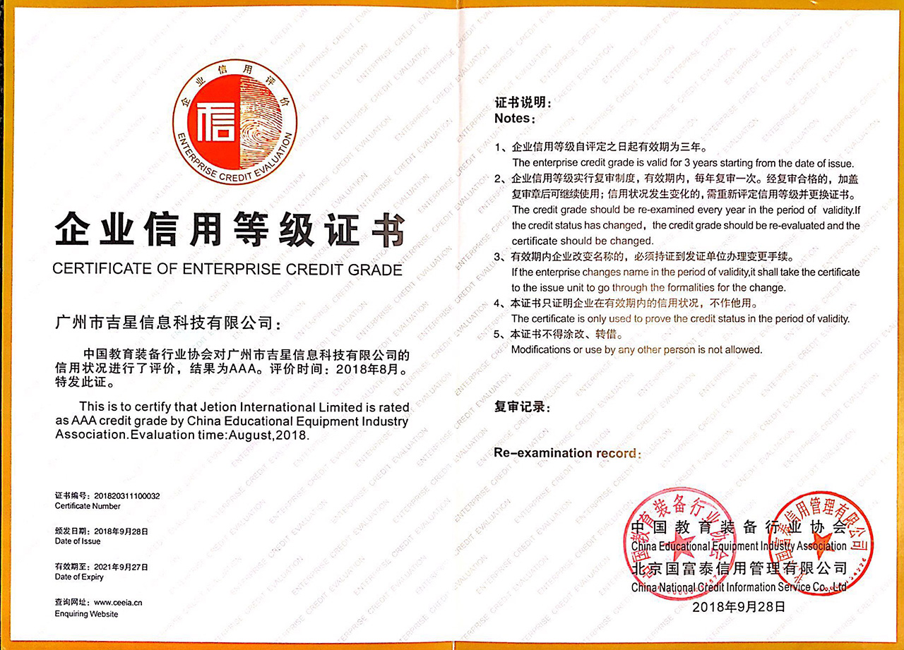 在榮獲AAA級(jí)企業(yè)信用榮譽(yù)后,我們也將會(huì)以更高的標(biāo)準(zhǔn)要求自己,為數(shù)字化校園提供更多更高效的教學(xué)方案,為行業(yè)發(fā)展做出榜樣貢獻(xiàn)自身的力量。