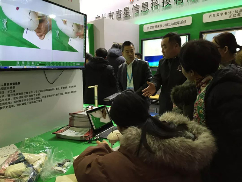 8日剛開展不久,吉星展區(qū)即爆滿,吉星智慧課堂產(chǎn)品吸引了全國各地的教育部門及學校領(lǐng)導等前來參觀、交流。