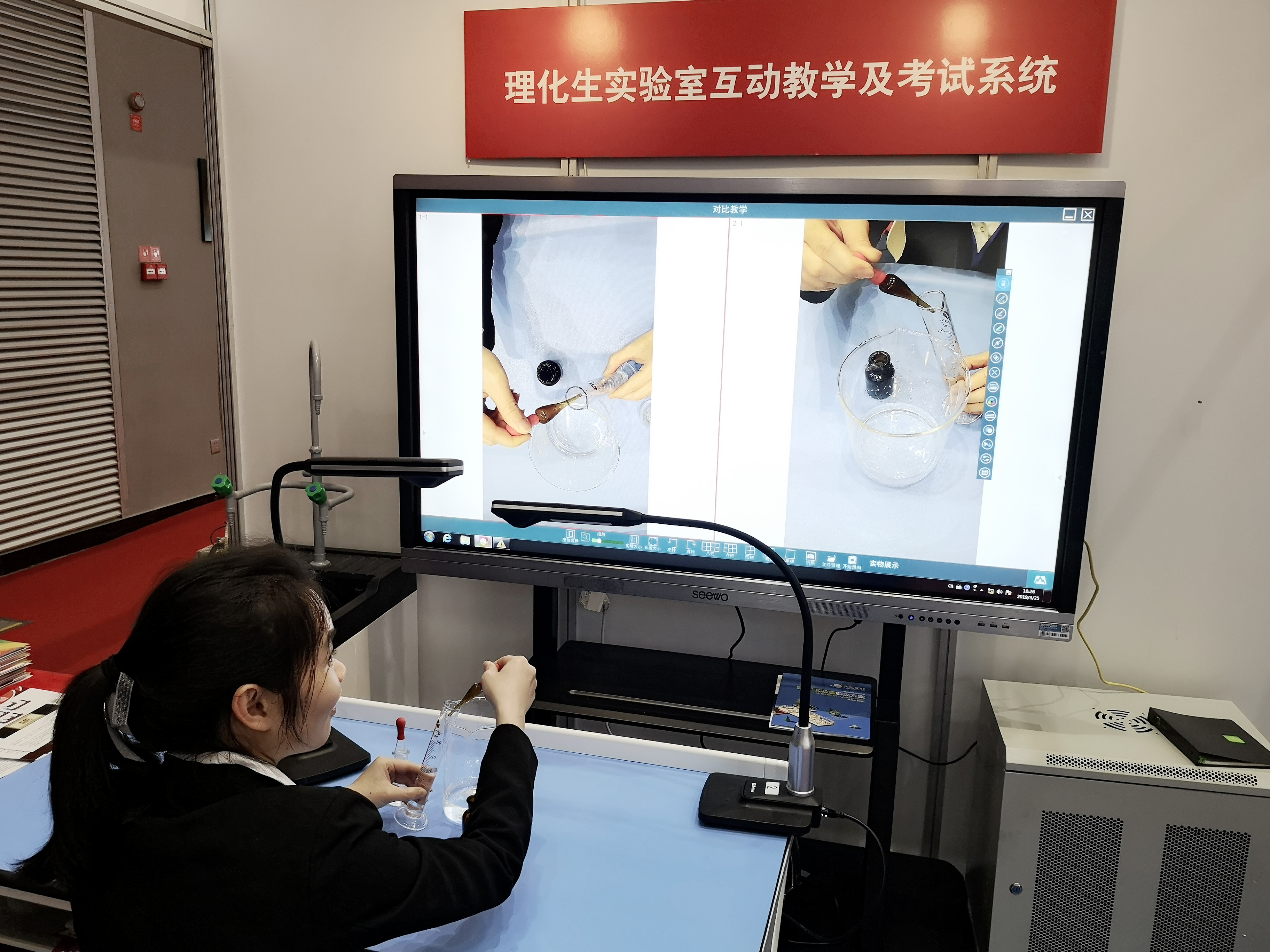 本次展會吉星推出了智慧實(shí)驗室互動教學(xué)及考試系統(tǒng),隨著中高考改革的深入推進(jìn),目前全國已有多個省份將實(shí)驗操作考試納入了中考考試范疇,高考中對實(shí)驗操作方面的知識考查點(diǎn)也在逐年增加。吉星通過軟硬件結(jié)合的技術(shù)方案,解決了理化生實(shí)驗操作類學(xué)科的教學(xué)、考試、素材收集、評分等信息化工作。(插視頻)