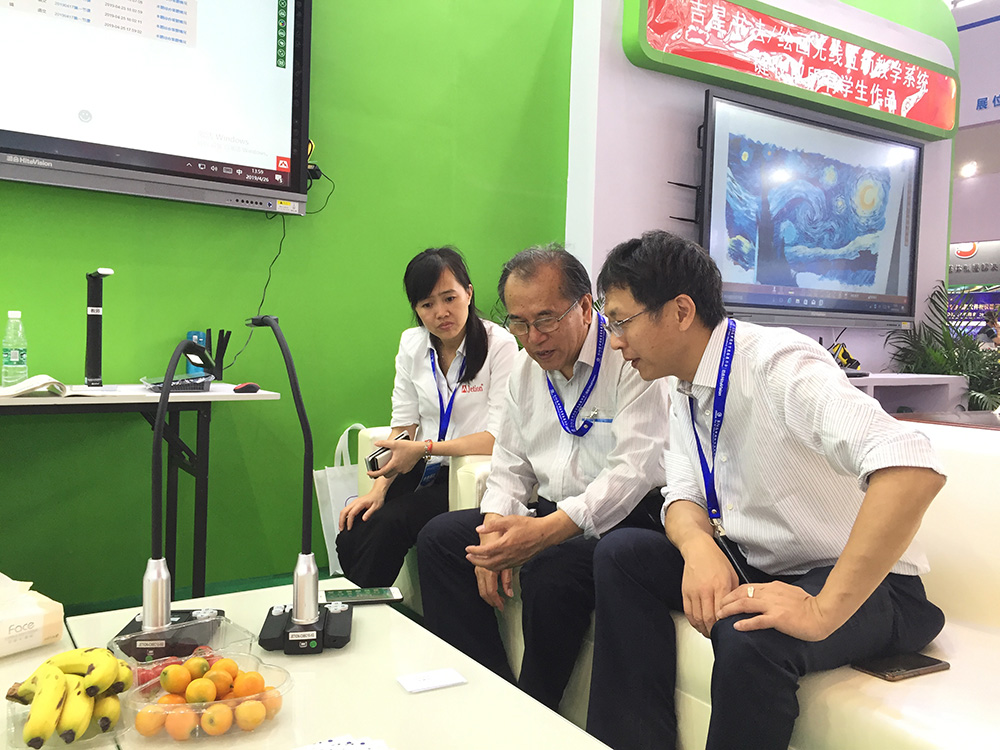 引人注目的三款新品分別為智慧校園整體解決方案、實驗室互動及模擬考試、書法繪畫無線互動教學解決方案