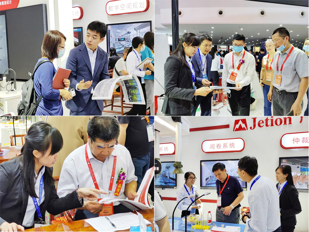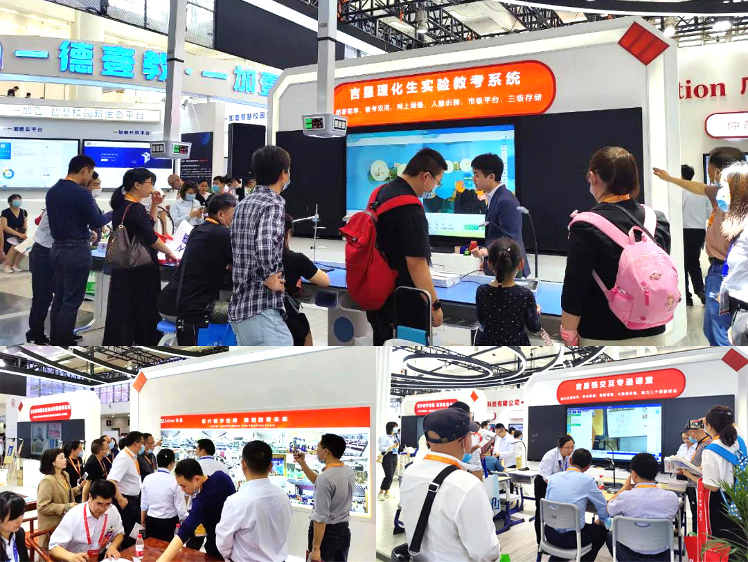 展會首日,吉星展出了3款核心產(chǎn)品方案:理化生實(shí)驗(yàn)教考系統(tǒng)、強(qiáng)交互專遞課堂以及校園教學(xué)空間整體設(shè)計(jì)規(guī)劃方案,方案一經(jīng)亮相就火爆全場。