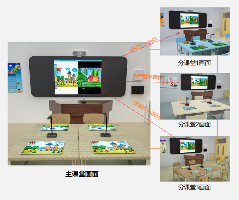 ? 可以同時調取兩個主課堂及兩個分課堂畫面,四屏互動對比