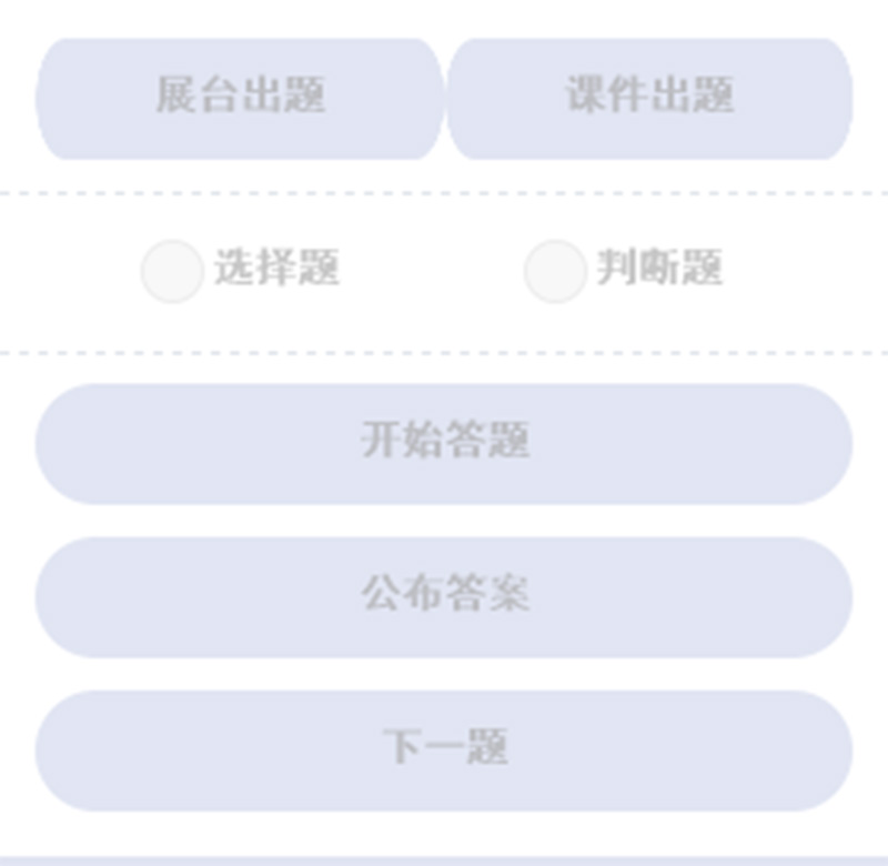 教師通過(guò)大屏展示測(cè)驗(yàn)考題,將試題轉(zhuǎn)化為電子形式展示,節(jié)約成本的同時(shí)也能夠讓學(xué)生清晰地看到試題。學(xué)生通過(guò)按鈕進(jìn)行作答,大屏實(shí)時(shí)展示答題狀況。