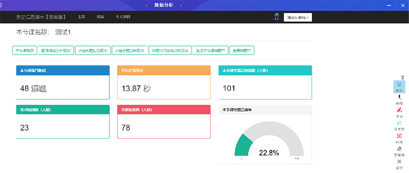 另外,試想一下,在課堂測(cè)驗(yàn)中老師如果可以及時(shí)看到學(xué)生在每一道題目正確率和數(shù)據(jù)統(tǒng)計(jì),在接下來(lái)的講解中就會(huì)更有側(cè)重點(diǎn),對(duì)于學(xué)生學(xué)習(xí)情況的掌握也會(huì)更清楚。