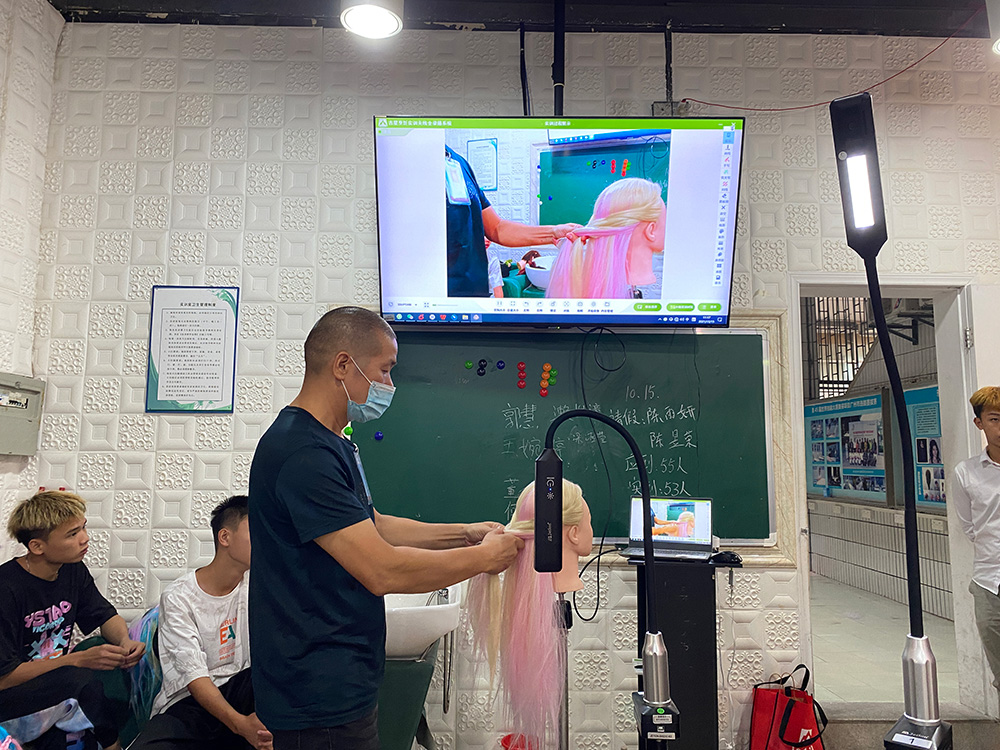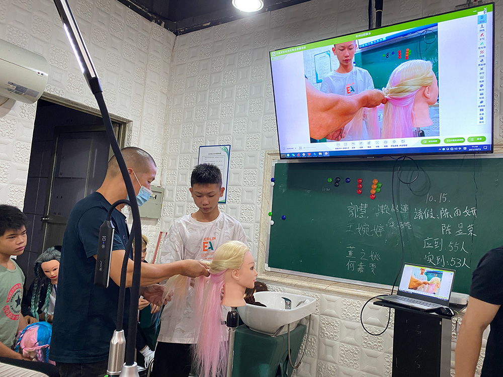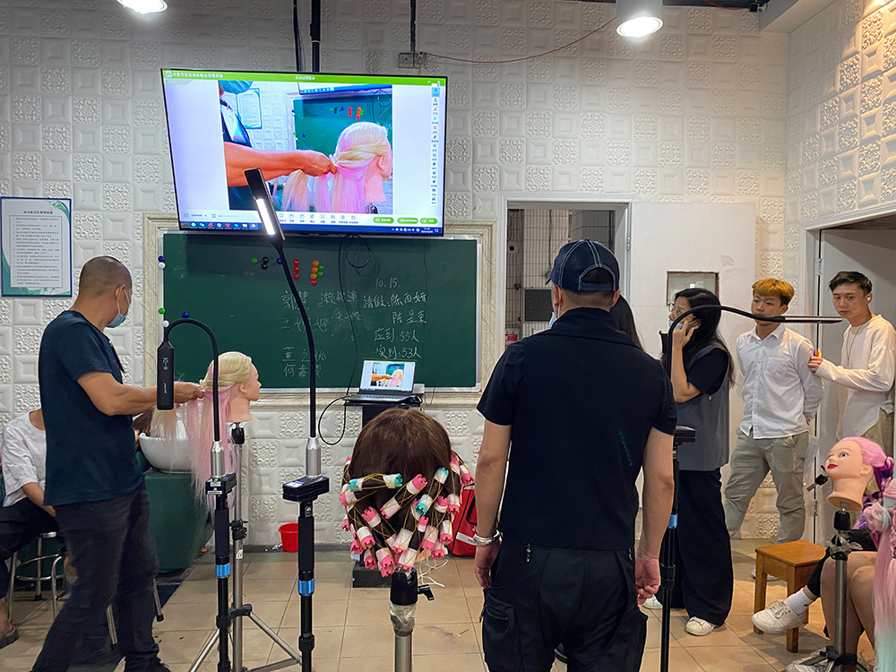 通過無線終端,可以拍攝不同幅面的教師美發(fā)美容操作并投放至大屏,無論是對頭發(fā)的細微操作,還是整個頭發(fā)造型的設(shè)計,都能清晰展示,讓學(xué)生能夠更快速掌握美發(fā)技能。