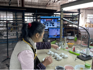 系統(tǒng)不僅實(shí)現(xiàn)“一師多班”的高效教學(xué)模式,還顯著提升校企合作的效率。在彩繪課教學(xué)中,從化陶藝非遺老師通過(guò)系統(tǒng)精準(zhǔn)示范上色步驟,同步講解技法要點(diǎn),讓學(xué)生們?cè)趯W(xué)習(xí)非遺技藝的同時(shí),也直觀了解工廠陶瓷生產(chǎn)車(chē)間的實(shí)際情況。