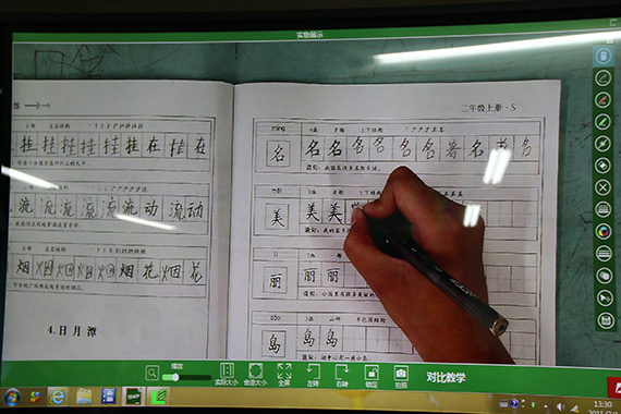 邵老師:這是我上過最高效、最輕松的一堂課!老師可以在展臺下進行書寫講解,分屏對照字帖演示等等,這時候同學們可以通過大屏幕觀看我的書寫手法,字體的架構,起筆、落筆的詳細過程,再也不用像以前一樣一個個的進行指正,縮短了前面的教學時間。之后再由同學們進行書寫,我可以隨機選取幾個學生的作業進行詳細的對比教學,讓同學們知道哪里是錯誤的,哪里是正確的,幫助他們掌握要點。另外我覺得最好的是還能現場進行錄制,課后進行回放可以更好的溫習,相當于老師又講了一遍,這是平時 課堂教學中不可能實現的功能。也能避免了學生上課的時候沒看清楚或者沒聽清楚再問老師的尷尬,只要自己會看一下老師的書寫視頻即可、有聲有影,孩子們學起來有興趣,我們老師教起來也更加高效。