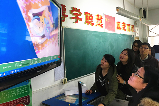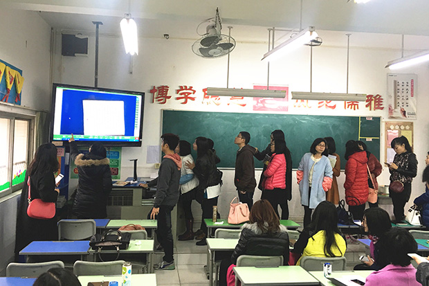 看完演示,教師們躍躍欲試,想在課堂上體驗一把無線展示的互動教學模式。沒問題,教師們分成三組,分別由三位講師去到不同的教室,一一培訓,保證人人過關。