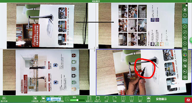 實物展臺功能是老師們在課堂上用得最多的功能了。像素30萬到500萬的分辨率可自由調(diào)節(jié),展示的圖片大小可進行縮放調(diào)節(jié),圖片可左轉(zhuǎn)、右轉(zhuǎn)。老師還可隨時拍攝、采集圖片。將教材放置在展臺底下進行展示,500萬高清鏡頭可清晰展示小五號的字體,并且沒有任何噪點和閃動!