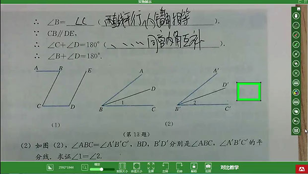 軟件上有單欄、雙欄、四欄對比。支持本地文檔調(diào)用對比,即時拍照掃描對比,動態(tài)與靜態(tài)展示對比。在教學過程中,老師可以將范本跟學生作業(yè),或者將多個不同答案的題目進行分屏對比,并且借助旁邊的白板工具對其進行講解批注,直觀而有效,大大提升了老師的教學效率。