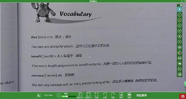 備課寶功能我認為是這個軟件的一大亮點。老師在制作課件需要采集素材的時候,無需再拍攝照片后傳輸?shù)诫娔X再拖到課件里。只需把實物放在展臺下面,直接雙擊拖動,就可以在桌面形成素材文件,還可以直接拖曳到Word、PPT等多格式文本中。綠色框可任意選取想截取的部分圖像,這樣的設計提高了老師的備課效率,節(jié)省時間。真是名副其實的“備課寶”!