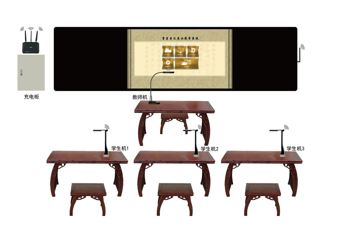 通過直觀地展示師生書法的提筆、運筆、落筆的書寫過程,進行實時點評教學,一鍵抓拍所有作品并同步上傳自動保存,解決傳統(tǒng)書法教學一對多的教學難題和教學效率低的問題,學生直觀掌握書寫細節(jié),理解書法難點。