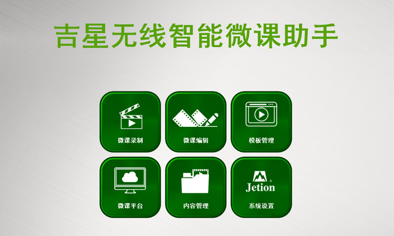 由吉星自主研發(fā)、真正實現(xiàn)微課錄制和編輯的工具軟件。它可與吉星無線微錄儀視頻展臺直接連接,為用戶提供“微課錄制、微課編輯、自定義模板管理、微課上傳”等多種微課制作、編輯的常用功能。